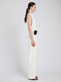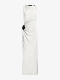 The Indria Dress in Matte Double Crepe is crafted with a straight neckline and side ruching for a flattering fit. Finished with a removable Italian leather flower detail, cut, assembled, and molded by hand for sculptural dimension. Details - White - Straight neckline - Sleeveless - Side ruching - Removable Italian leather flower detail - Straight hem - Slim fit - Lined - 70% triacetate, 30% polyester - SKU: R2543031BBY116100 Size & Fit - Model is 5'11'' with 30'' bust / 35.5'' hips. Wearing size 4 Care - 70% triacetate, 30% polyester - Dry clean only