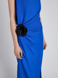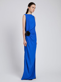 The Indria Dress in Matte Double Crepe is crafted with a straight neckline and side ruching for a flattering fit. Finished with a removable Italian leather flower detail, cut, assembled, and molded by hand for sculptural dimension. Details - New blue - Straight neckline - Sleeveless - Side ruching - Removable Italian leather flower detail - Straight hem - Slim fit - 70% triacetate, 30% polyester - SKU: R2543031BY116404 Size & Fit - Model is 5'11'' with 30'' bust / 35.5'' hips. Wearing size 4 Care - 70% triacetate, 30% polyester - Dry clean only