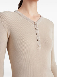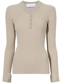 Isla knitted top Highlights - Khaki beige - Wool - Viscose rib - Front button placket - V-neck - Long sleeves - Buttoned cuffs - Straight hem Imported Composition Wool 100%, Viscose 82%, Polyester 18%