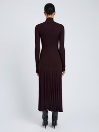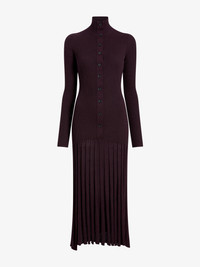 The Jada Dress in Superfine Merino is knitted to a slim silhouette with an adjustable button-front placket that can be worn open for a relaxed look or closed for a high neckline. Finished with a drop-waist skirt and a subtle high-low hem. Details - Burgundy - Buttoned collar - Long sleeves - Drop-waist skirt - High-low hem - Slim silhouette - 100% superfine merino wool - SKU: R2547274KW117602 Size & Fit - Model is 5'11'' with 32'' bust / 34.5'' hips. Wearing size Small Care - 100% superfine merino wool - Dry clean only