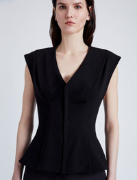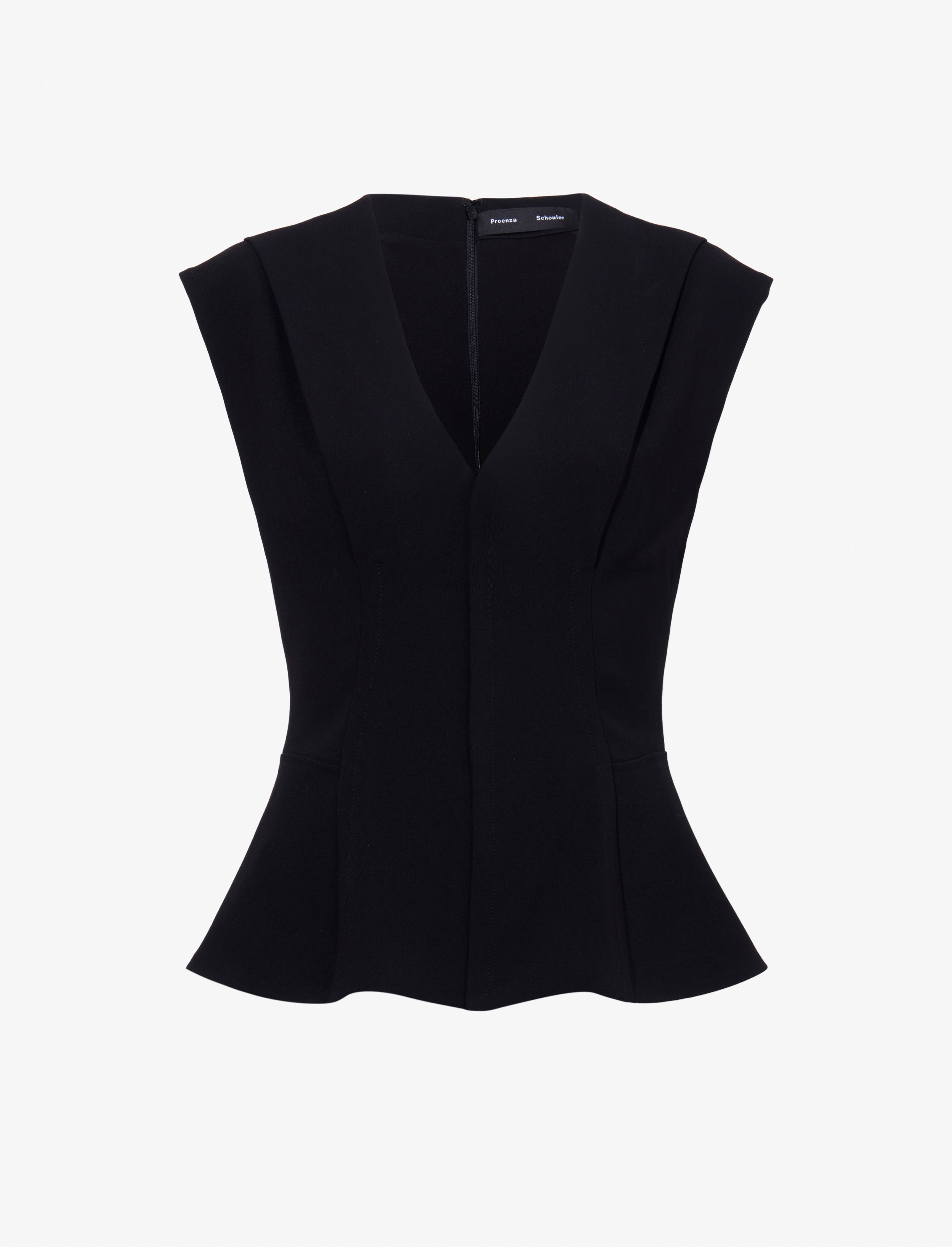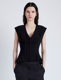 The Janet Top in Matte Double Crepe is cut to a slim A-line silhouette with V-neckline. Completed with a center back zipper closure. Details - Black - V-neck - Sleeveless - Zipper closure - Straight hem - A-line silhouette - Slim fit - 70% triacetate, 30% polyester - SKU: R2444012BY116001 Size & Fit - Model is 5'10'' with 31.5'' bust / 34'' hips. Wearing size 4 Care - 70% triacetate, 30% polyester - Dry clean only