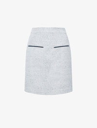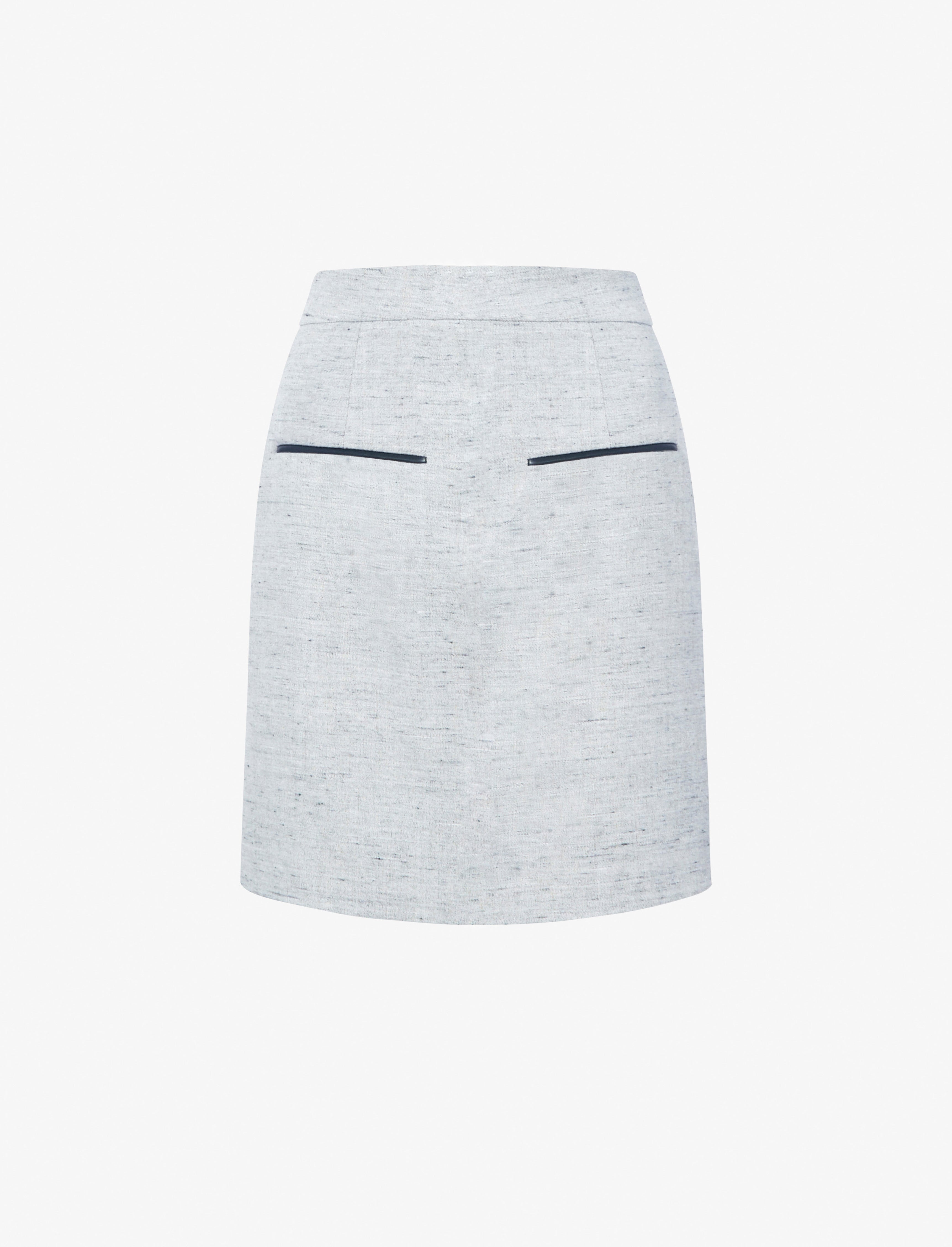 The Judith Skirt in Melange Viscose Linen is tailored to a high waisted mini skirt. Completed with front faux leather welt pockets, a zipper closure and a single back flap pocket. Details - Grey multi - High waist - Zipper closure - Faux welt pockets - Back flap pocket - Faux leather trim details - Above the knee length - Straight hem - Slim fit - 90% viscose, 7% linen, 3% polyamide - SKU: R2435004AY185062 Size & Fit - Model is 5'11'' with 28.5'' bust / 34.5'' hips. Wearing size 4 Care - 90% viscose, 7% linen, 3% polyamide - Dry clean only