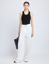 The Jules Pant in Linen Viscose is tailored to a high-waisted silhouette with a concealed fastening and tonal waist belt. Falling wide through the leg, they are accentuated with pressed pleats and side slip pockets. Details - Off white - Slightly sheer - High-waisted - Belt loops - Tonal waist belt - Silver-tone hardware - Concealed front closure - Side slip pockets - Pressed pleats - Wide leg - Full-length hem - 59% viscose, 41% linen - SKU: R2526004BY333102 Size & Fit - Model is 5'11'' with 30'' bust / 35.5'' hips. Wearing size 4 Care - 59% viscose, 41% linen - Dry clean only