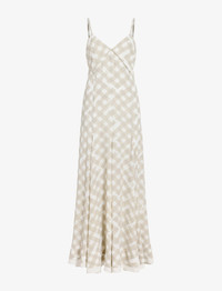 The June Dress in Printed Crepe De Chine features an A-line silhouette. Designed with a self-tie to gently define the waist, it features a maxi length and a subtle double hem detail. Details - Oyster multi - V-neckline - Thin shoulder straps - Self-tie fastening - Center back zipper closure - Double hem detailing - Maxi-length - Slip silhouette - Lined - 100% viscose - SKU: R2533023BYP137347 Size & Fit - Model is 5'10'' with 31'' bust / 34.5'' hips. Wearing size 4 Care - 100% viscose - Dry clean only