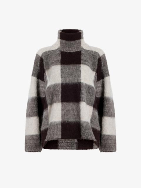 The Kai Top in Brushed Glenplaid Knit features a plush knit turtleneck silhouette with a brushed finish. Details - Black multi - Brushed finish - Turtleneck - Long sleeves - Relaxed fit - 41% alpaca, 23% merino wool, 33% nylon, 3% elastane - SKU: R2547288KW192002 Size & Fit - Model is 5'11'' with 30'' bust / 35.5'' hips. Wearing size Small Care - 41% alpaca, 23% merino wool, 33% nylon, 3% elastane - Dry clean only