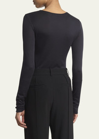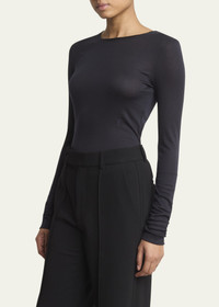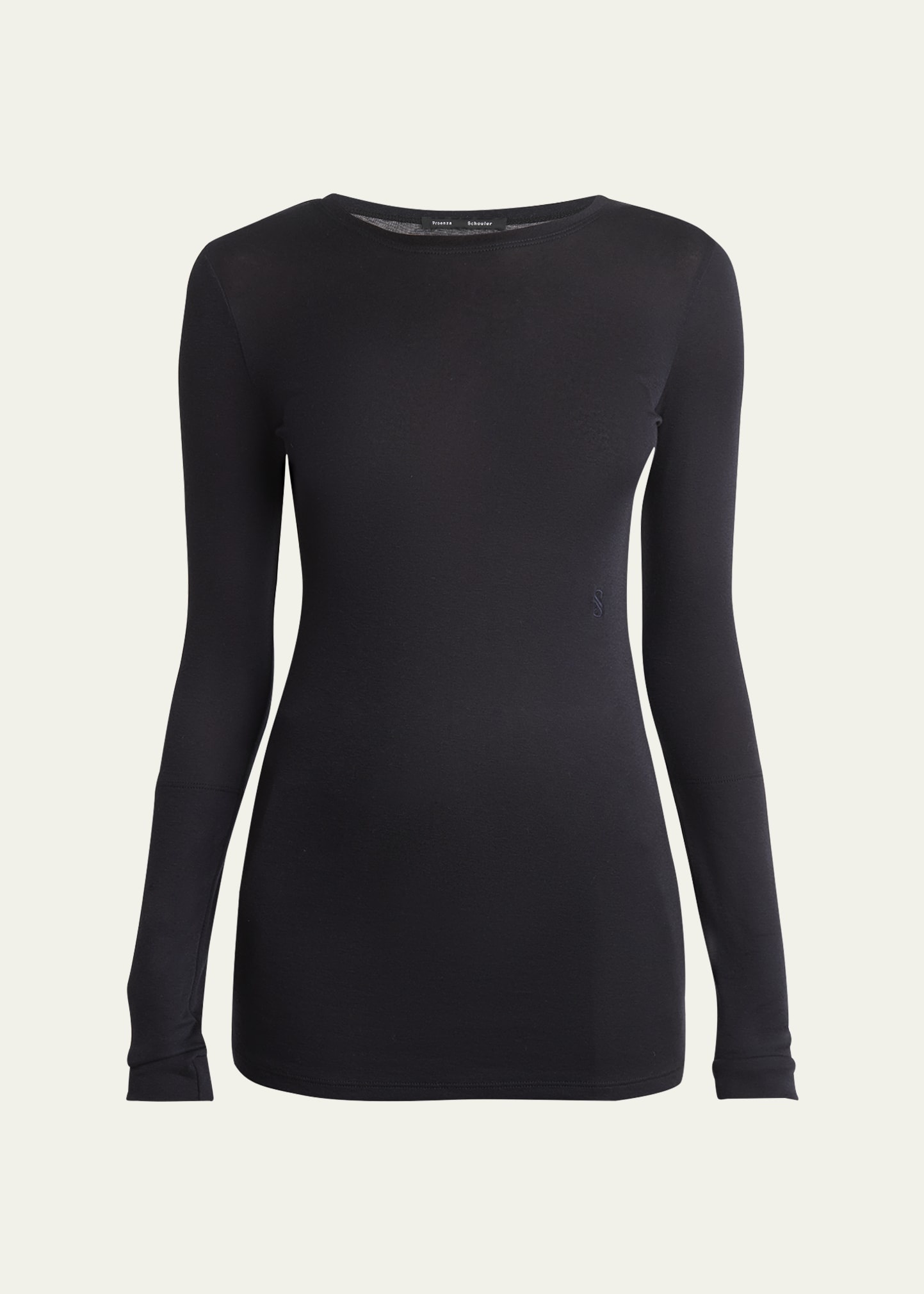 The Kaiya Top in Sheer Slub Jersey features a long sleeve silhouette with shoulder patch detailing. Finished in the front with a tonal embroidered monogram. Details • Midnight • Sheer fabrication • Lightweight • Crew neck • Long sleeve • Shoulder patch • Small embroidered monogram • 80% tencel, 16% polyamide, 4% polyurethane • SKU: R2444006JY110401 Size & Fit • Model is 5'10'' with 31.5'' bust / 34'' hips. Wearing size Small Care • 80% tencel, 16% polyamide, 4% polyurethane • Dry clean only