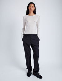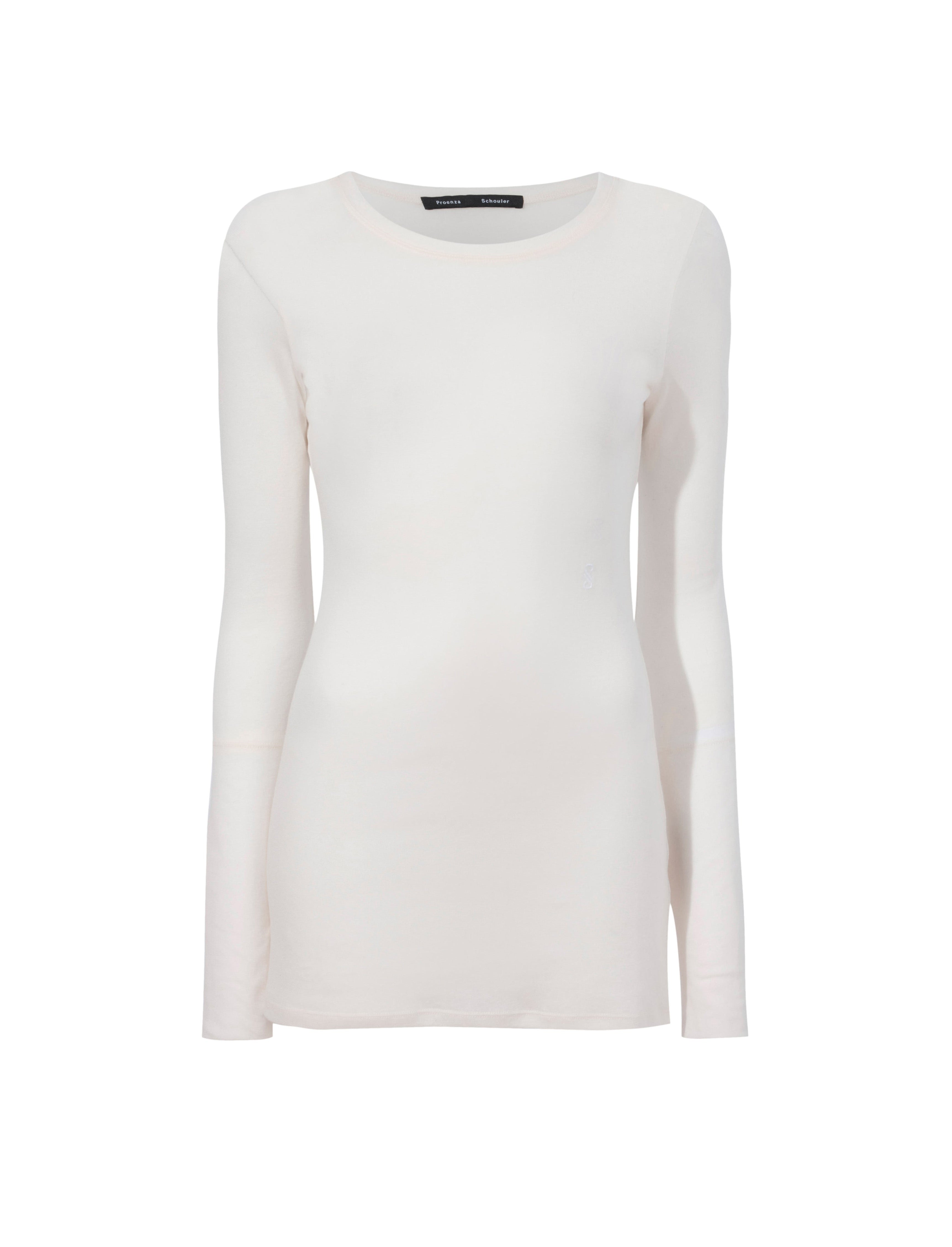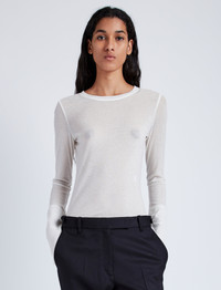 The Kaiya Top in Sheer Slub Jersey features a long sleeve silhouette with shoulder patch detailing. Finished in the front with a tonal embroidered monogram. Details - Bone - Sheer fabrication - Lightweight - Crew neck - Long sleeve - Shoulder patch - Small embroidered monogram - 80% tencel, 16% polyamide, 4% polyurethane - SKU: R2444006JY110123 Size & Fit - Model is 5'9'' with 30'' bust / 34.5'' hips. Wearing size Small Care - 80% tencel, 16% polyamide, 4% polyurethane - Dry clean only