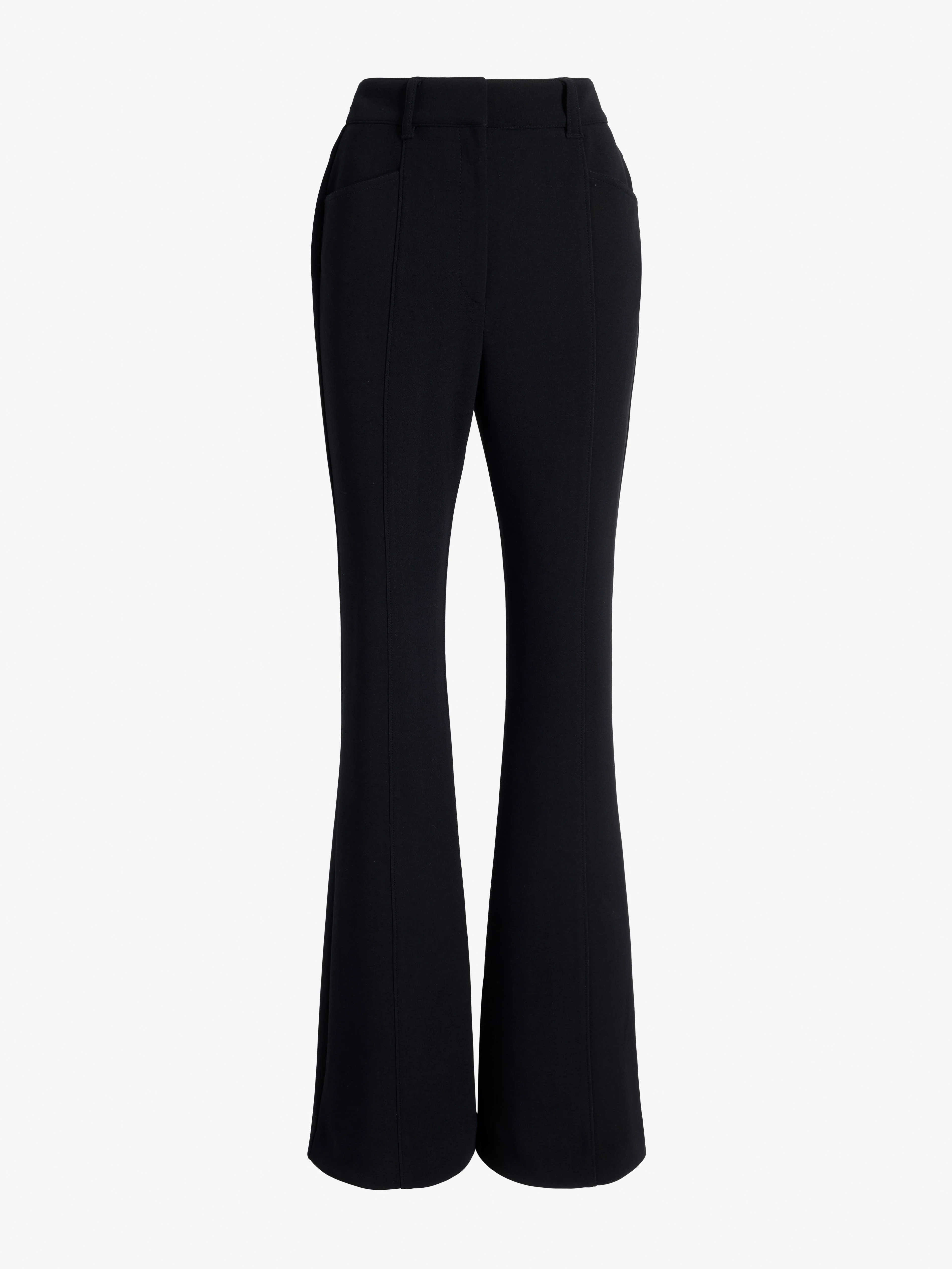 The Kalea Pant in Compact Stretch Crepe is cut slim through the leg with a flared hem, and features a concealed front fastening and patch pockets at the back. Details - Black - High waisted - Concealed front fastening - Side slip pockets - Back patch pockets - Flared hem - Slim silhouette - 95% polyester, 5% polyurethane - SKU: R2616001BY360001 Size & Fit - Model is 5'11'' with 30'' bust / 35.5'' hips. Wearing size 4 Care - 95% polyester, 5% polyurethane - Dry clean only