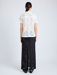 The Kennedy Top in Stretch Lace is crafted from semi-sheer lace to a short sleeve silhouette with polo detailing at the neckline. Details - Off white - Semi sheer lace - Point collar - V-cut neckline - Short sleeves - Straight hem - 55% polyamide, 34% viscose, 11% elastane - SKU: R2514007FY020S101 Size & Fit - Model is 5'10'' with 32'' bust / 34'' hips. Wearing size 4 Care - 55% polyamide, 34% viscose, 11% elastane - Dry clean only