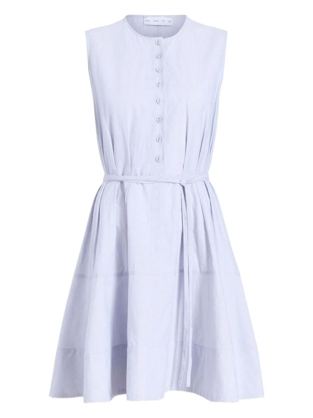 Kenzie dress Highlights - Light blue - Front button fastening - Tied waist - Crew neck - Sleeveless Imported Composition pure cotton 100%, Linen/Flax 100%