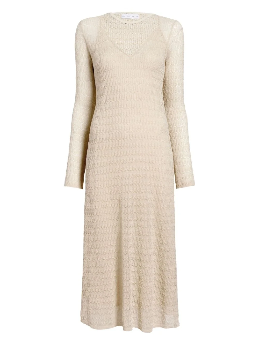 knitted long-sleeve midi dress Highlights - Cream - Textured knit - Fitted long sleeves - Ankle length - Subtle sheer effect Imported Composition Linen/Flax 100%, Polyamide 100% Washing instructions Read Manufacturer Guidelines