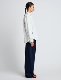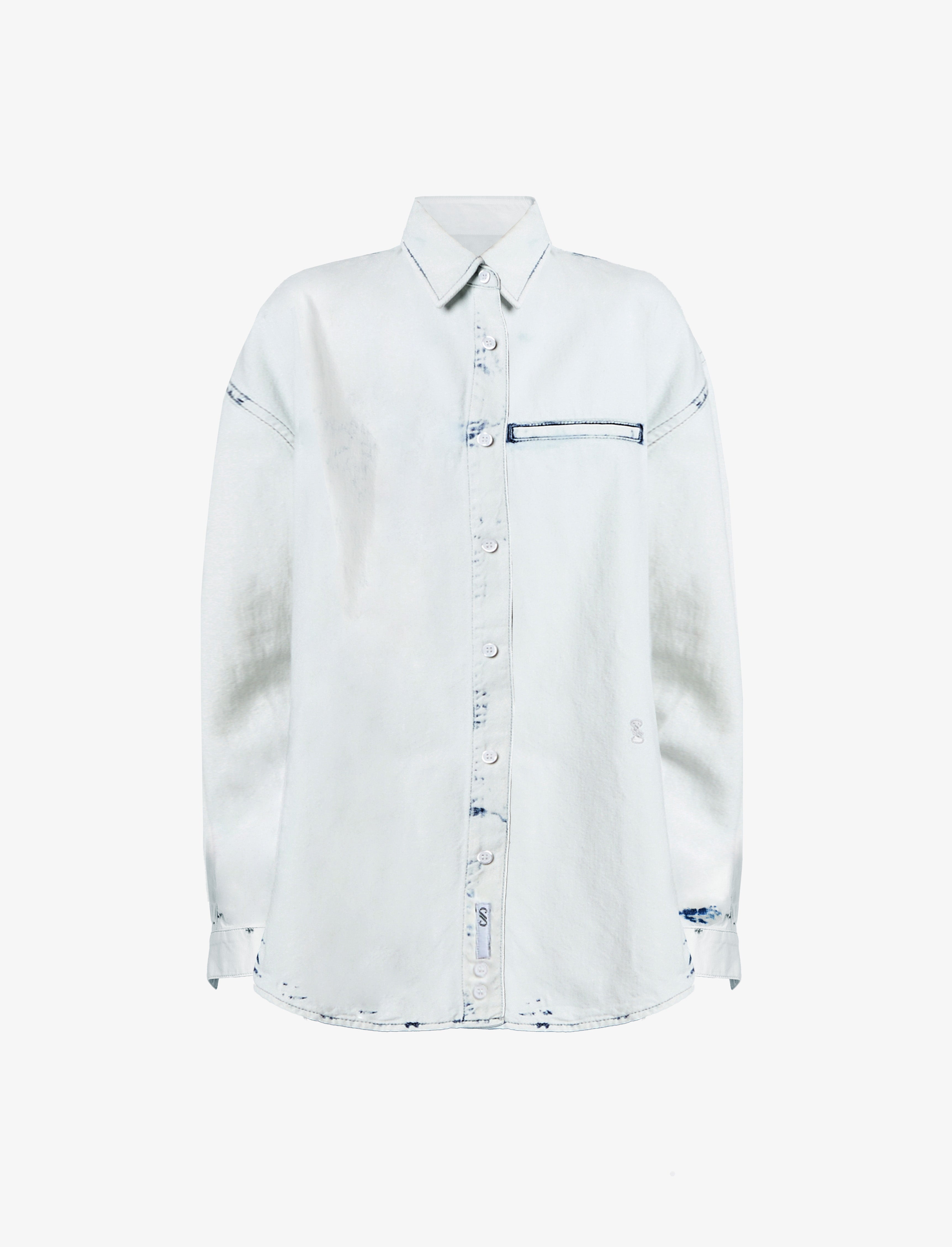 Details - Bleach out - Denim - Point collar - Drop shoulders - Chest welt pocket - Button placket - Raised side hems - 100% cotton - SKU: R2538008DC066989 Size & Fit Care - 100% cotton - Dry clean only