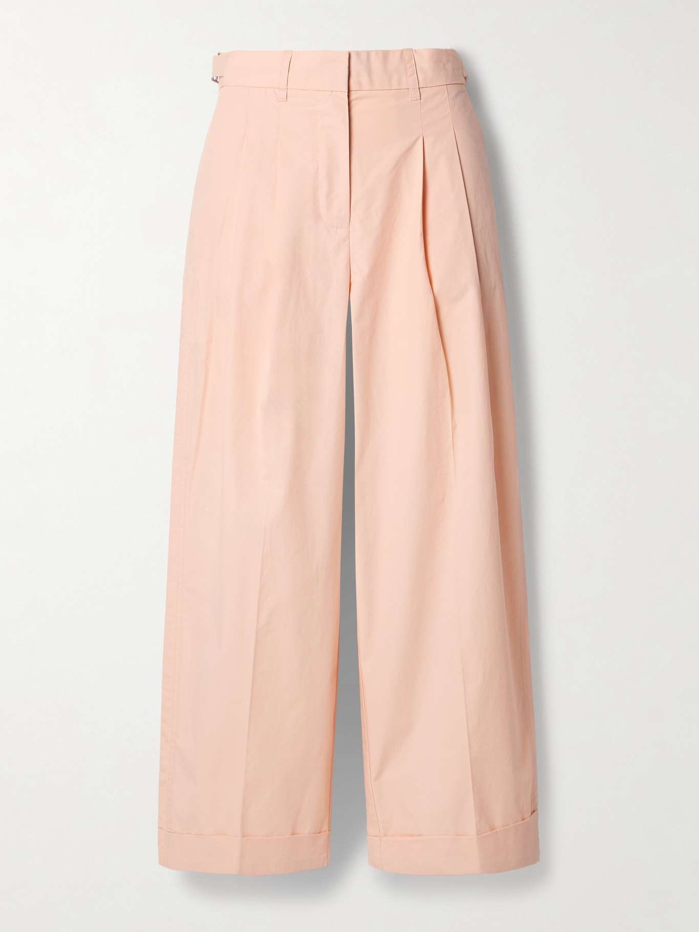 Kyle cropped pleated cotton-poplin wide-leg pants Pastel pink