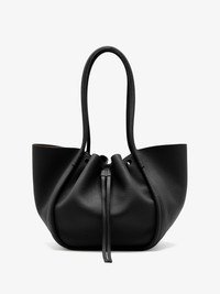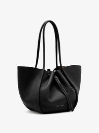 Designed for a soft, unstructured silhouette, the Large Ruched Tote is crafted using soft pebbled calf. Featuring a ruched top and the signature gold-tone logo stamp. Complete with an internal leather zip pouch. The Tote family consists of the Extra Small, Small, Large, and XL. Details - Black - Pebbled leather - Two handles - Open top with magnetic fastening - Logo stamp - Unlined interior - Internal zip pouch - 100% calfskin - SKU: HB253105C329S001 Size & Fit - W: 50cm x H: 27cm x D: 19cm - Top Handle Height: 25cm Care - 100% calfskin - Our bags are hand crafted using genuine leather. Variations in tone, marks or grain are common and should not be considered imperfections. Like all natural materials, leather reacts to the atmosphere. Humidity, rain, and sunlight can damage leather. Should a slight white coating appear on the surface of the leather, it can easily be removed using a dry cloth. Should the leather get wet, please absorb the water immediately with a dry cloth. Overexposure to sunlight can stain or alter the color of the leather.