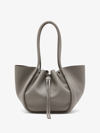 Designed for a soft, unstructured silhouette, the Large Ruched Tote is crafted using soft pebbled calf. Featuring a ruched top and the signature gold-tone logo stamp. Complete with an internal leather zip pouch. The Tote family consists of the Extra Small, Small, Large, and XL. Details - Slate - Pebbled leather - Two handles - Open top with magnetic fastening - Logo stamp - Unlined interior - Internal zip pouch - 100% calfskin - SKU: HB253105C329S035 Size & Fit - W: 50cm x H: 27cm x D: 19cm - Top Handle Height: 25cm Care - 100% calfskin - Our bags are hand crafted using genuine leather. Variations in tone, marks or grain are common and should not be considered imperfections. Like all natural materials, leather reacts to the atmosphere. Humidity, rain, and sunlight can damage leather. Should a slight white coating appear on the surface of the leather, it can easily be removed using a dry cloth. Should the leather get wet, please absorb the water immediately with a dry cloth. Overexposure to sunlight can stain or alter the color of the leather.