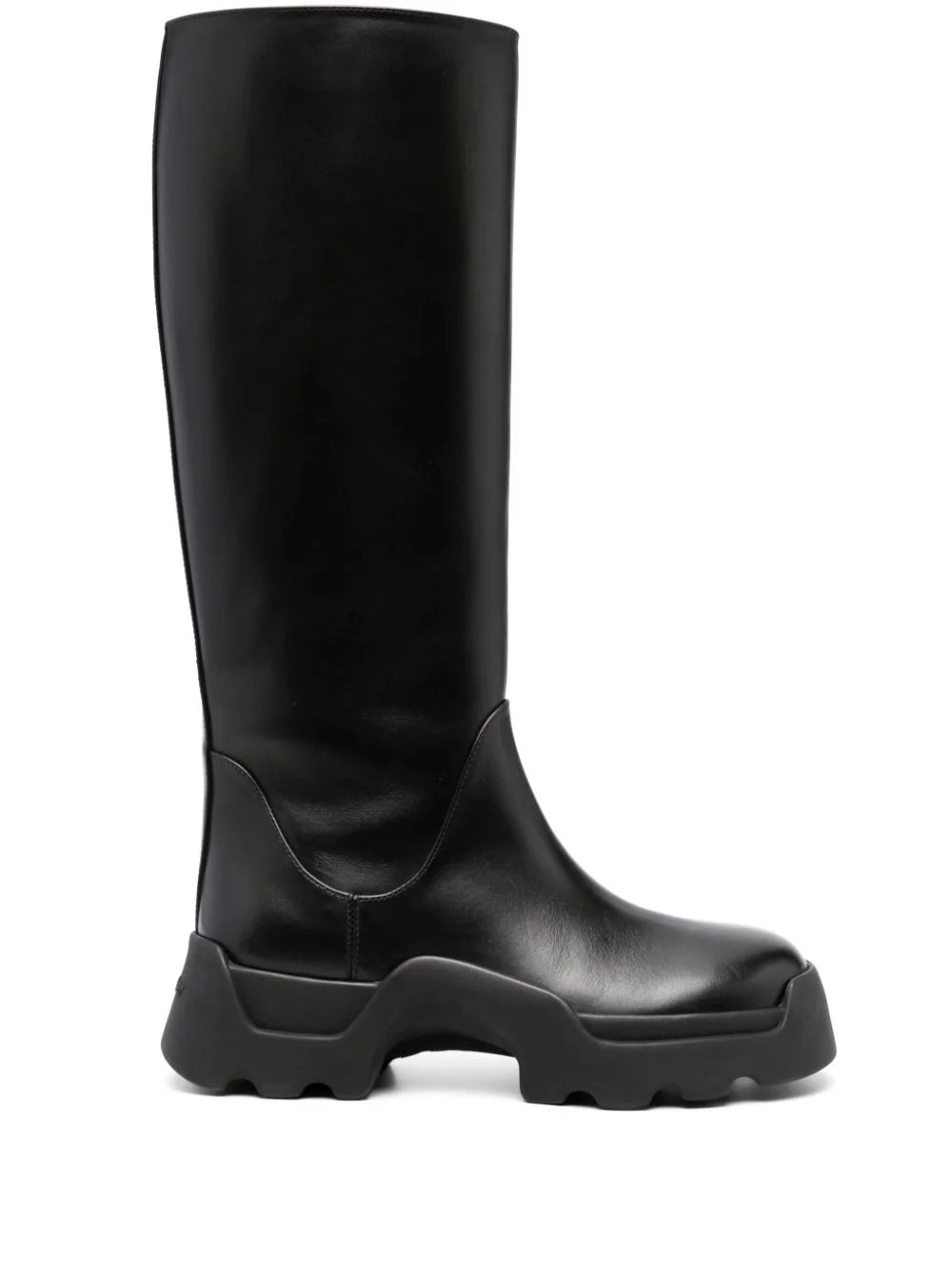 leather knee-high boots Highlights - Black - Calf leather - Panelled design - Round toe - Slip-on style - Rubber sole - Knee-high Made in Italy Composition Leather 100% SIZE & FIT Measurement CIRCUMFERENCE 13.77 in(35 cm) HEEL 1.57 in(4 cm) HEIGHT 14.56 in(37 cm) Sole height 1.37 in(3.5 cm)