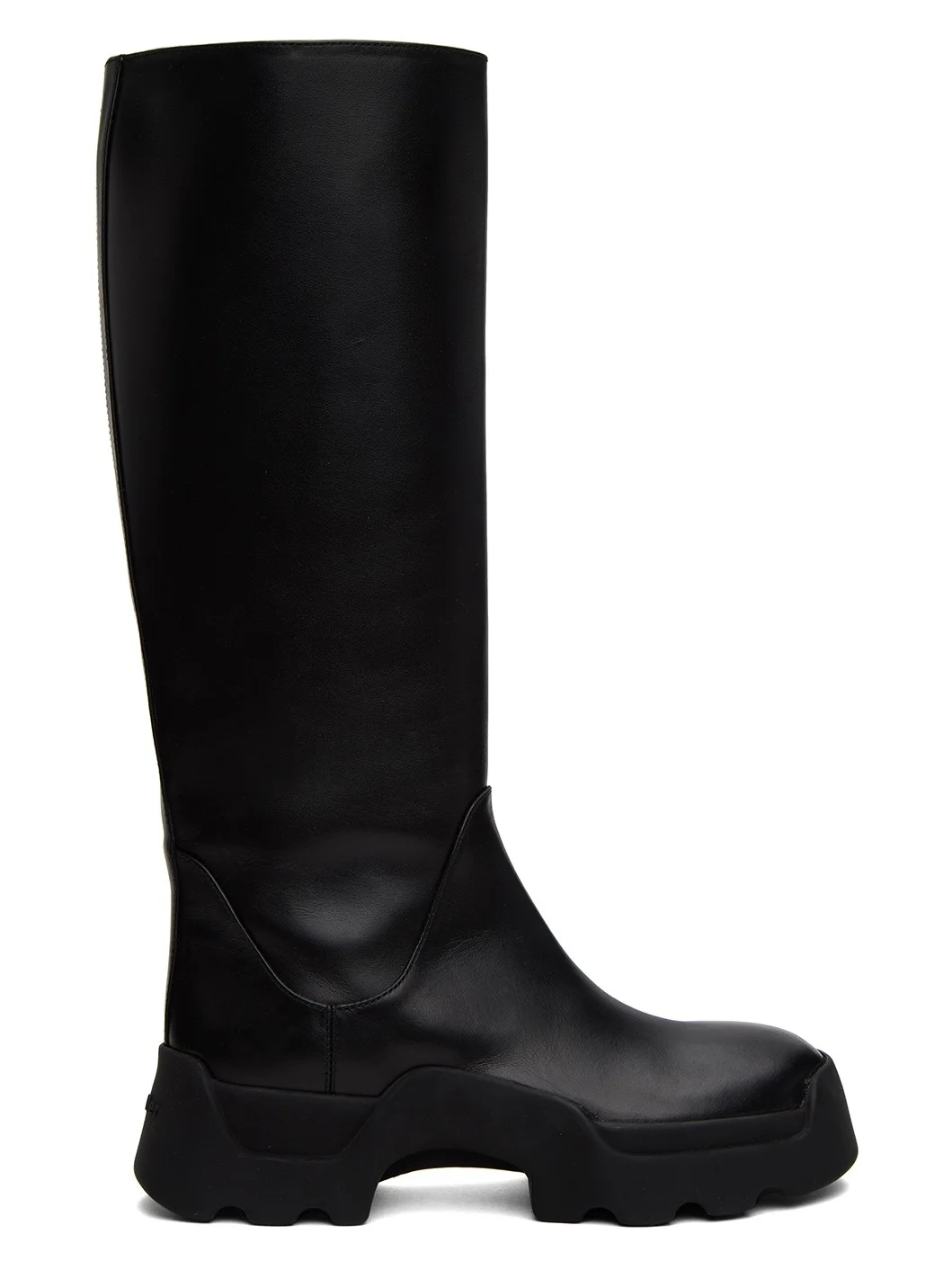Knee-high buffed leather boots in black. · Buffed leather lining · Logo embossed at treaded rubber sole Supplier color: Black