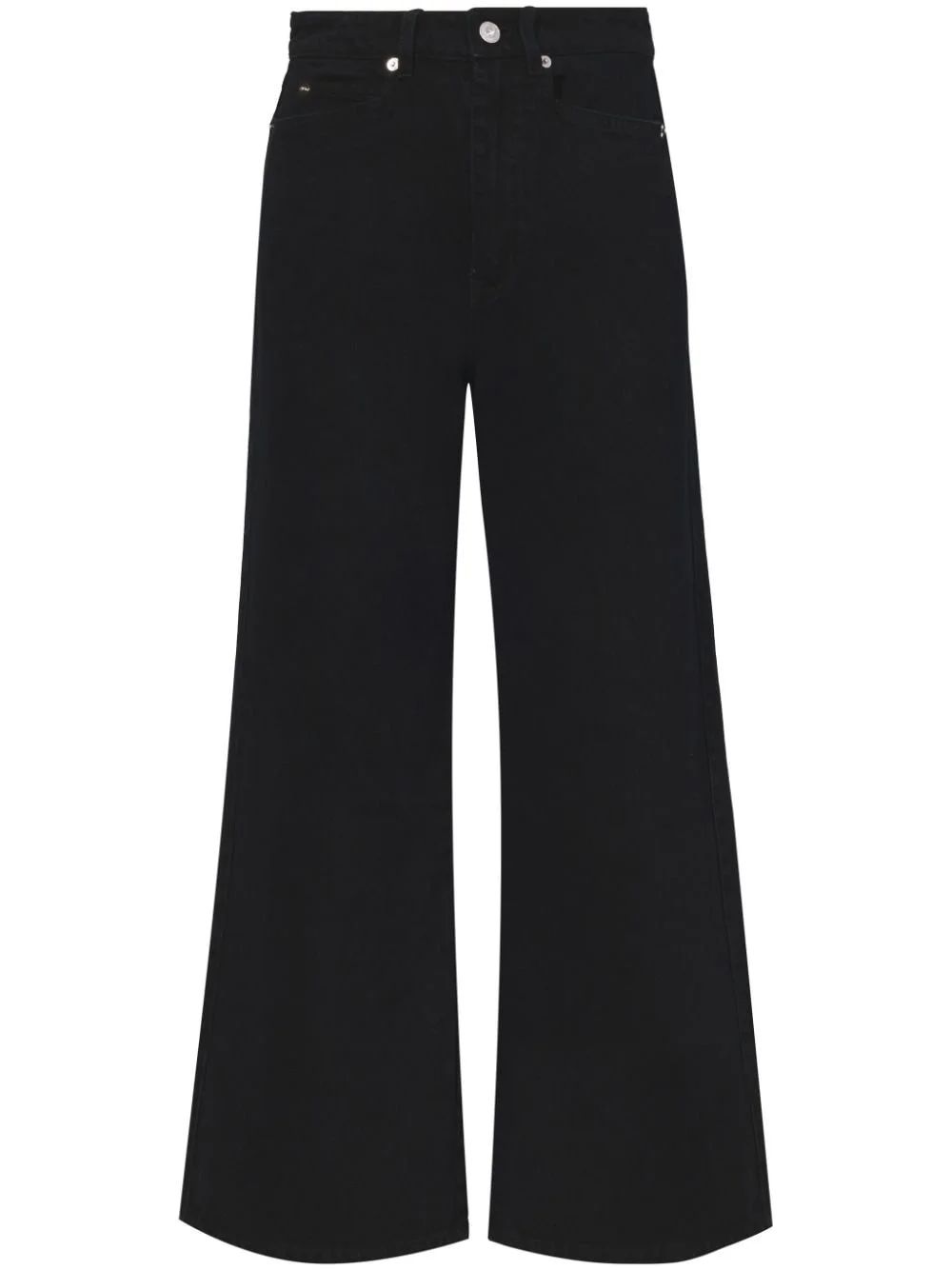 logo-patch cropped jeans Highlights - Black - Stretch-cotton - Denim - Logo patch to the rear - Front button and zip fastening - Belt loops - Classic five pockets - Flared design - Cropped leg Imported Composition Cotton 99%, Spandex/Elastane 1% Washing instructions Dry Clean Only