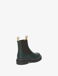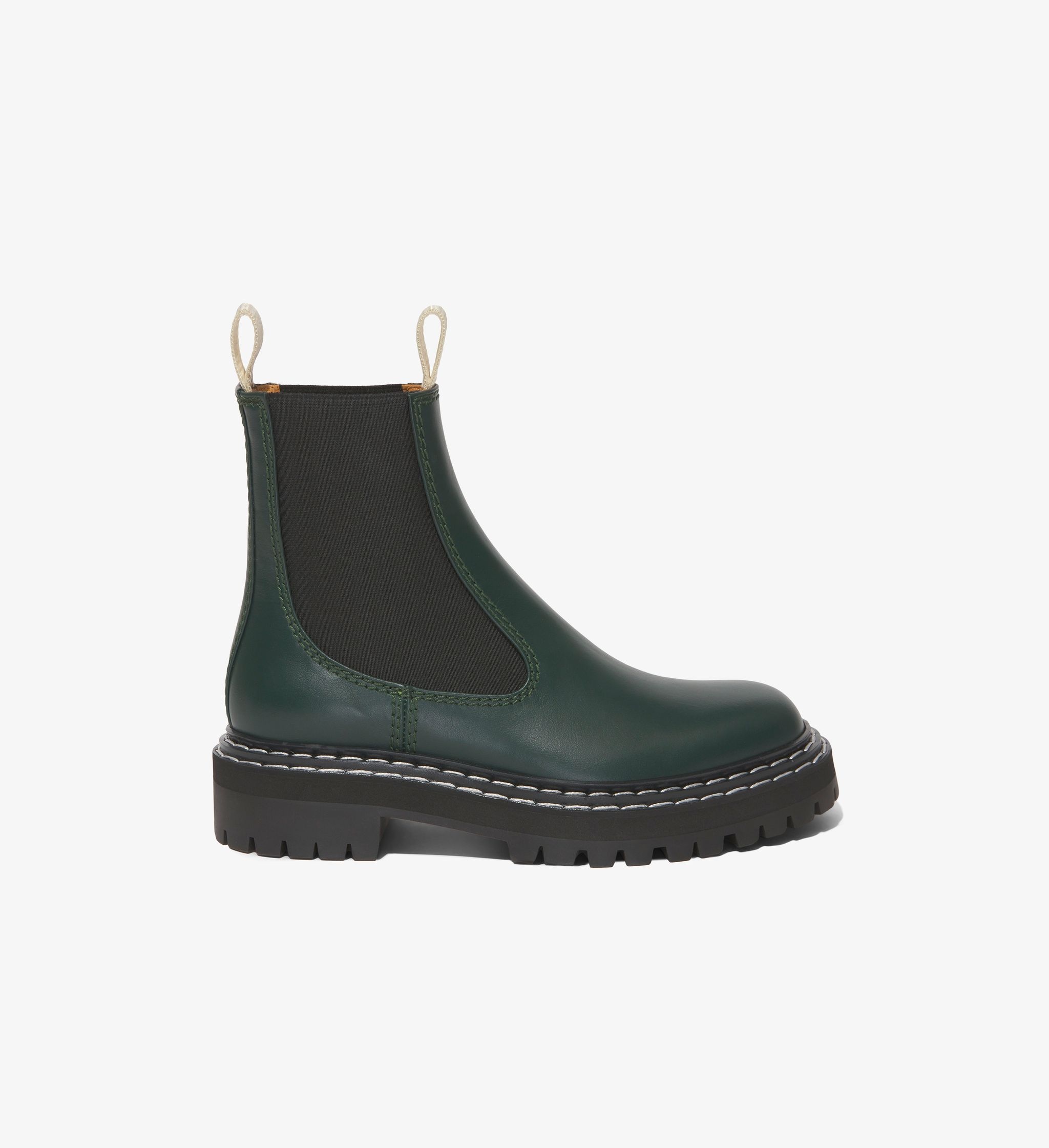 The Lug Sole Chelsea Boots are crafted in smooth green leather to a slim silhouette with elasticated side panels. Cream canvas pull tabs at the front and back. Lightweight rubberized tread sole with contrast topstitching. Slip-on design. Calf leather. Made in Italy. Upper: calf leather Sole: rubber Heel height: 25mm / 1" SKU: PS35115A425425