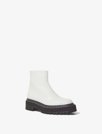 The Lug Sole Platform Boots are crafted in smooth leather and set on a chunky rubberized sole with contrast topstitching. Round toe. Side zip closure. Leather. Made in Italy. Upper: leather Sole: rubber SKU: PS40102A17121120