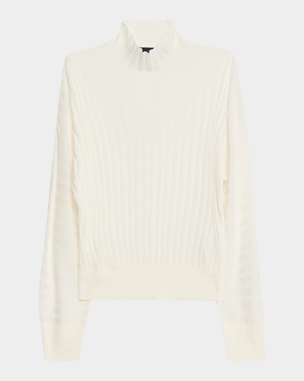Crafted from sunburst knit, Proenza Schouler & apos;s "Luiza" sweater is designed with a soft ribbed texture and a & nbsp;fitted waistband. Turtleneck & nbsp; Dropped shoulders Long sleeves Relaxed fit Pullover style Viscose/polyamide Dry clean Imported SIZE & FITModel measurements: 5 & apos;10" tallModel is wearing a US size 4/Small