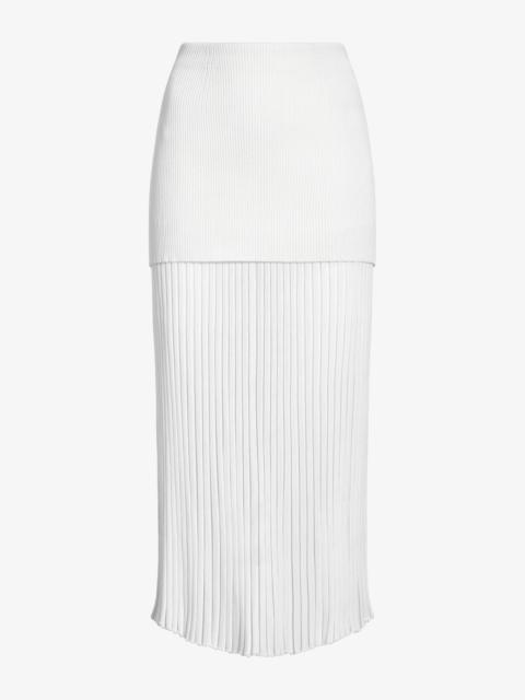 The Luiza Skirt in Sunburst Rib is crafted to create the illusion of layered construction. It features a compact ribbed upper panel paired with a sunburst ribbed lower hem that adds fluid movement. Details - Bottle green - Ribbed knit - High-rise - Layered construction - Straight hem - Slim silhouette - 80% viscose, 13% polyamide, 7% polyester - SKU: R2617309KY410302 Size & Fit - Model is 5'10.5'' with 31'' bust / 34.5'' hips. Wearing size Small Care - 80% viscose, 13% polyamide, 7% polyester - Dry clean only