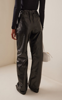 Proenza Schouler White Label was created to bridge the gap between the high-end and everyday. The Magnus Pant in lightweight leather a relaxed wide leg pant with an exaggerated hemline. Sits high on the hip with a double self-tie fastening around the waistband. PRODUCT DETAILS - Fall '25 - Pull on - Composition: 100% goat leather; Lining: 97% polyester, 3% spandex - Dry clean - Imported