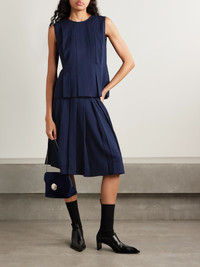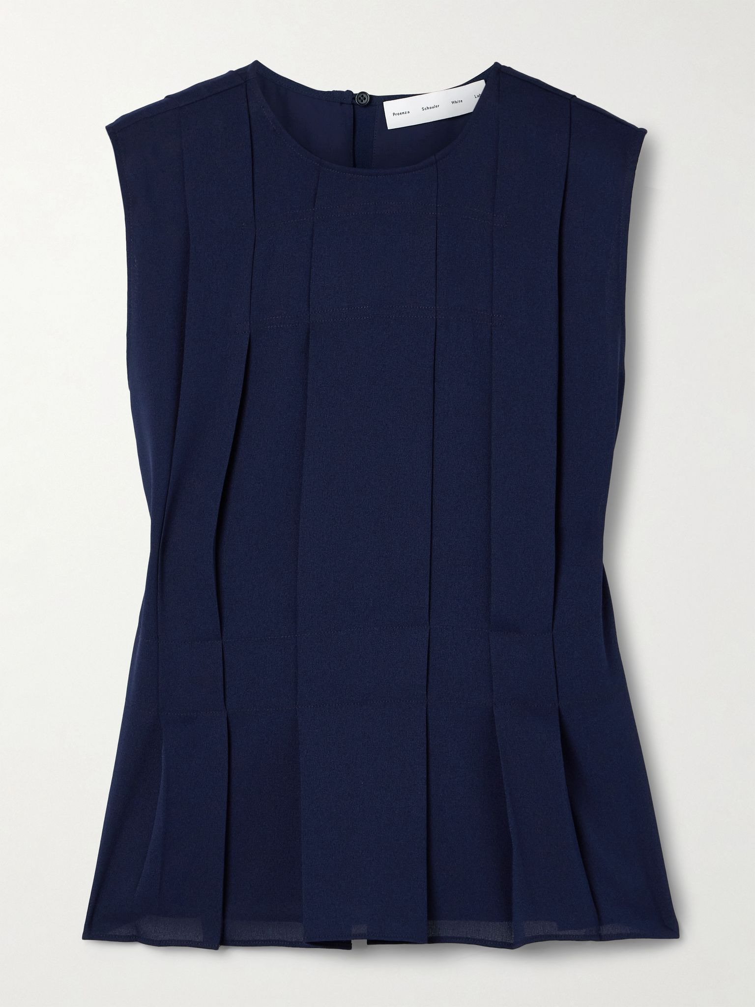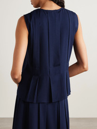 Proenza Schouler White Label's 'Makayla' tank is pressed with pleats, giving the shape volume and creating a subtle peplum hem. Meant to be worn with the 'Jess' skirt, it's cut from lightweight crepe and comes in a versatile navy shade. Size & Fit - Fits true to size, take your normal size - Designed for a slightly loose fit - Lightweight, fluid, non-stretchy fabric - Model is 175cm/ 5'9" and is wearing a US 2 Details & Care - Navy crepe - Button and snap-fastening keyhole at back - 100% polyester; lining: 100% polyester - Fully lined - Dry clean