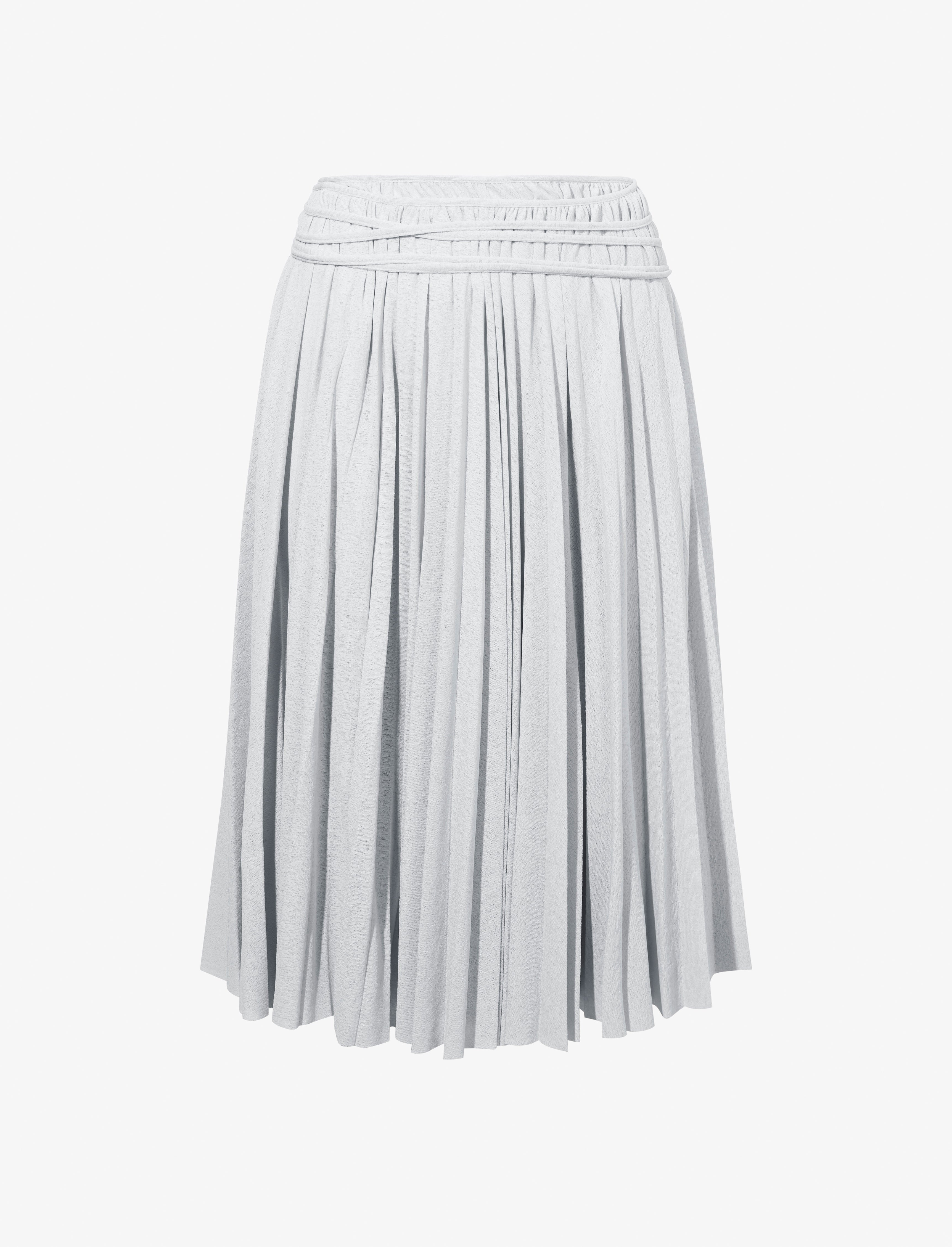The Margo Skirt in Gauzy Jersey is crafted to a sheer low-rise skirt with micro pleating throughout. Completed with a thin wrap-around self-tie. Details - Pale grey - Sheer fabrication - Low-rise - Micro pleated - Thin self-tie - Below the knee length - Slim fit - 100% polyester - SKU: R2435006JY108053 Size & Fit - Model is 5'10'' with 32'' bust / 34'' hips. Wearing size 4 Care - 100% polyester - Dry clean only