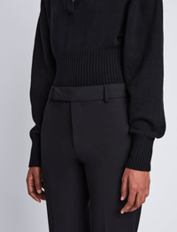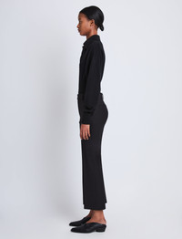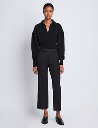 The Marlene Pant in Tropical Wool is tailored to a high-rise silhouette with a concealed front fastening and belt loops. Falling to a cropped length, they're complete with a slightly flared ankle. Details - Black - High waist - Concealed front fastening - Belt loops - Welt back pockets - Slightly flared leg - Cropped length - Slim fit - SKU: Size & Fit - Model is 5'11'' with 30'' bust / 35'' hips. Wearing size 4 Care - Dry clean only