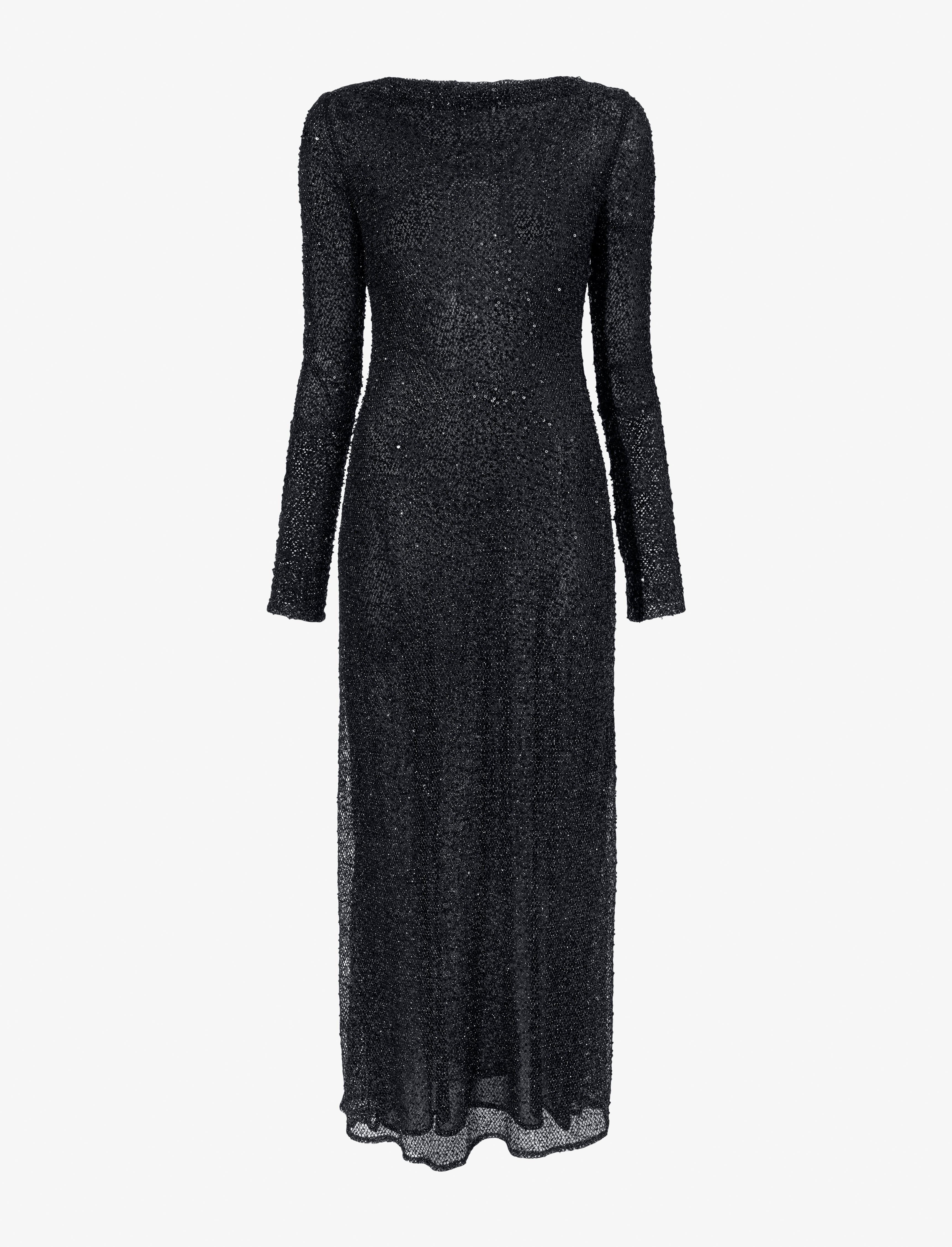 The Marlowe Dress in Sequin features a lightweight ankle-grazing silhouette lined in stretch tulle. Completed with all-over sequin detailing. Details - Black - Lightweight stretch - Crew neck - Long sleeve - Tulle lined - Straight hem - Slim fit - Outer Layer: 95% polyester, 5% elastane; Lining: 100% polyester - SKU: R2513002EM126001 Size & Fit - Model is 5'11'' with 31'' bust / 36'' hips. Wearing size 4 Care - Outer Layer: 95% polyester, 5% elastane; Lining: 100% polyester - Dry clean only