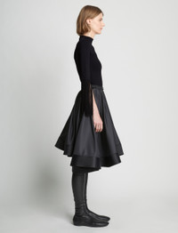 The Matte Viscose Knit Fringe Sweater is cut to a close-fitting silhouette with a mock neck. Features short sleeves with extended fringing at the cuffs. 75% viscose, 25% polyester. Made in Italy. SKU: R2317050KY270001