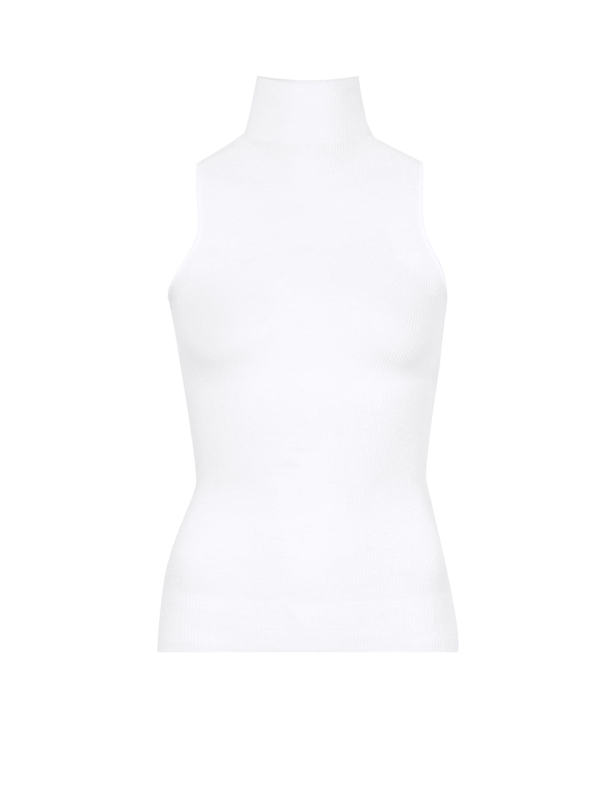 The Matte Viscose Knit Top is crafted using a rib-stitch technique to a slim, sleeveless silhouette. Features a roll neck. Details • White • Ribbed knit • Roll neck • Sleeveless • Slim fit • 83% viscose, 17% polyamide • • Size & Fit • Model is 5'11"; with 31.5"; bust / 35"; hips. Wearing size Small Care • 83% viscose, 17% polyamide • •
