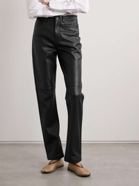 EDITORS'NOTES No modern wardrobe is complete without a pair of chic leather pants. Proenza Schouler White Label's 'Maxine' style has a paneled design with straight legs and a high waist. Style them with everything from bodysuits to cardigans or collared shirts. SIZE & FIT Model measurements: - Fits true to size, take your normal size - High-rise, cut for a straight-leg fit - Supple, non-stretchy leather - Model is 180cm/ 5'11" and is wearing a US 4 - Bust: 76cm/ 30" - Waist: 60cm/ 23.5" - Hip: 88cm/ 34.5" DETAILS & CARE - Black leather - Button and concealed zip fastening at front - 100% leather (Lamb)