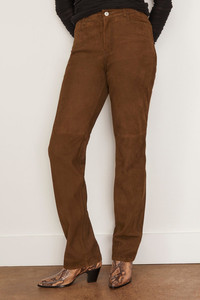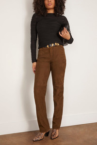 The Proenza Sschouler Maxine Pant in Suede is cut to a high-waist silhouette that falls straight through the leg. Finished with a logo-debossed patch at the back. - Wood - High waist - Belt loops - Button and concealed zip front fastening - Slip side pockets - Logo patch at back - Patch back pockets - Straight leg - Slim fit - 100% lambskin