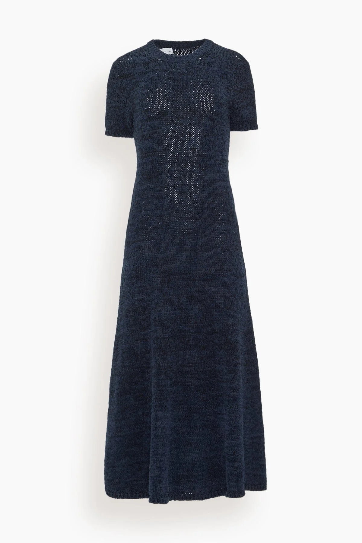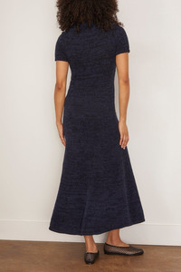 The Proenza Schouler White Label Mel Dress in Marled Cotton is knitted to a slim A-line silhouette and finishes at a mid-length hem. FIT DETAILS - Navy, black ombre - Crew neckline - Short sleeves - Straight hem - A-line silhouette - 81% cotton, 19% polyamide