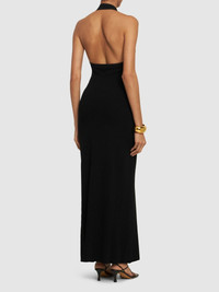 The Meryl Dress in Matte Viscose Rib is crafted to a slim maxi-length silhouette with a halter neckline. Details - Black - Pull-on dress - Halter neck - Open back - Maxi length - Slim fit - 81% viscose, 19% polyester - SKU: R2437163KY283001 Size & Fit - Model is 5'11'' with 31.5'' bust / 34'' hips. Wearing size Small Care - 81% viscose, 19% polyester - Dry clean only