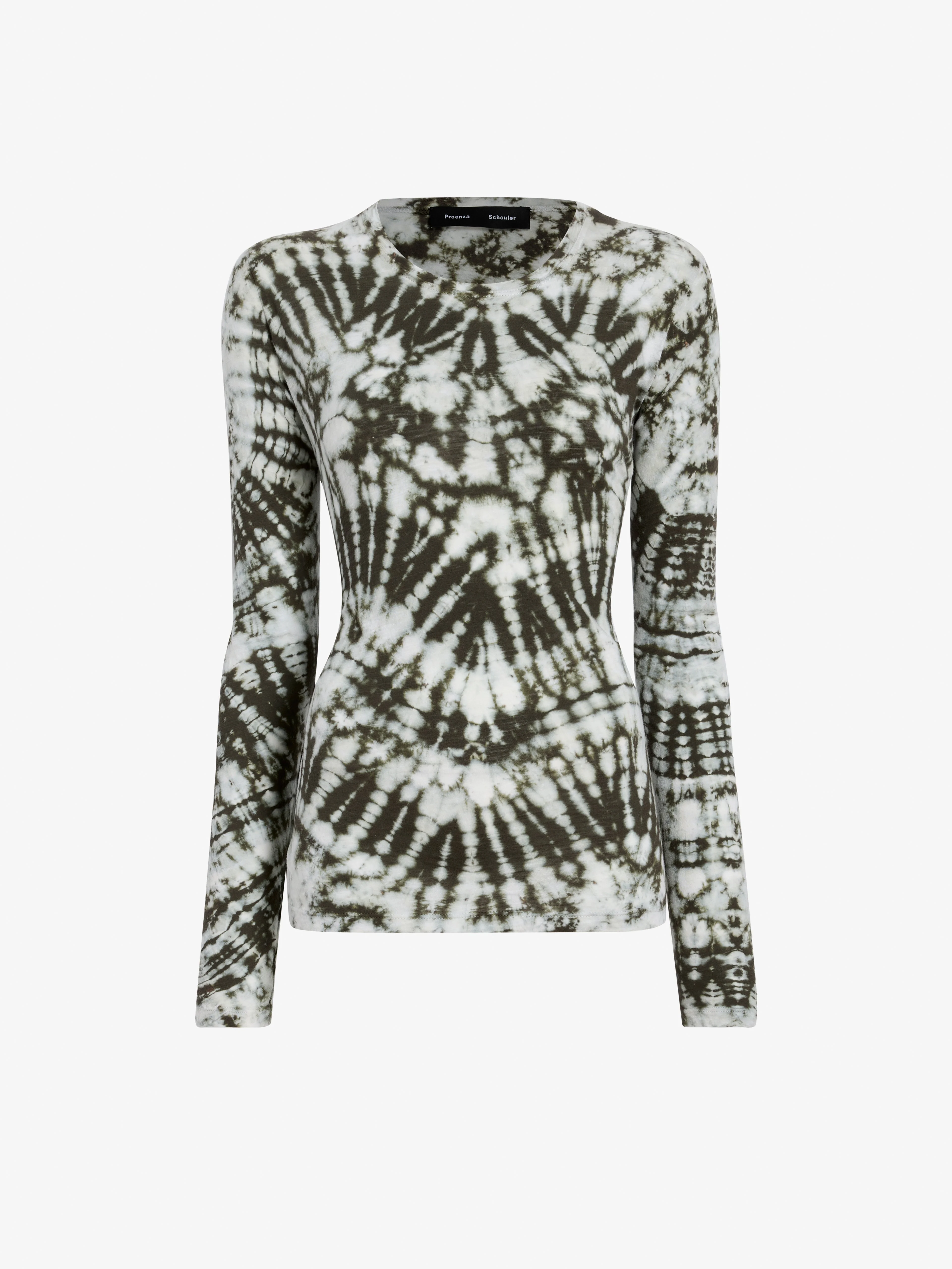 The Mia Top in Tie-Dye Tissue Jersey is cut from ultra-soft tissue jersey, featuring an all-over hand-dyed tie-dye finish. Designed with a relaxed silhouette, it includes a crew neckline and long sleeves. Please note: Each piece is individually hand-dyed, making it truly one of a kind. Variations in color and pattern are a natural result of the artisanal dyeing process and may differ slightly from the garment pictured. Details - Caper multi - Hand-dyed tie-dye - Crew neckline - Long sleeves - Straight hem - Slim fit - 100% cotton - SKU: R2614021JCP11337 Size & Fit - Model is 5'10.5'' with 31'' bust / 34.5'' hips. Wearing size Small Care - 100% cotton - Dry clean only
