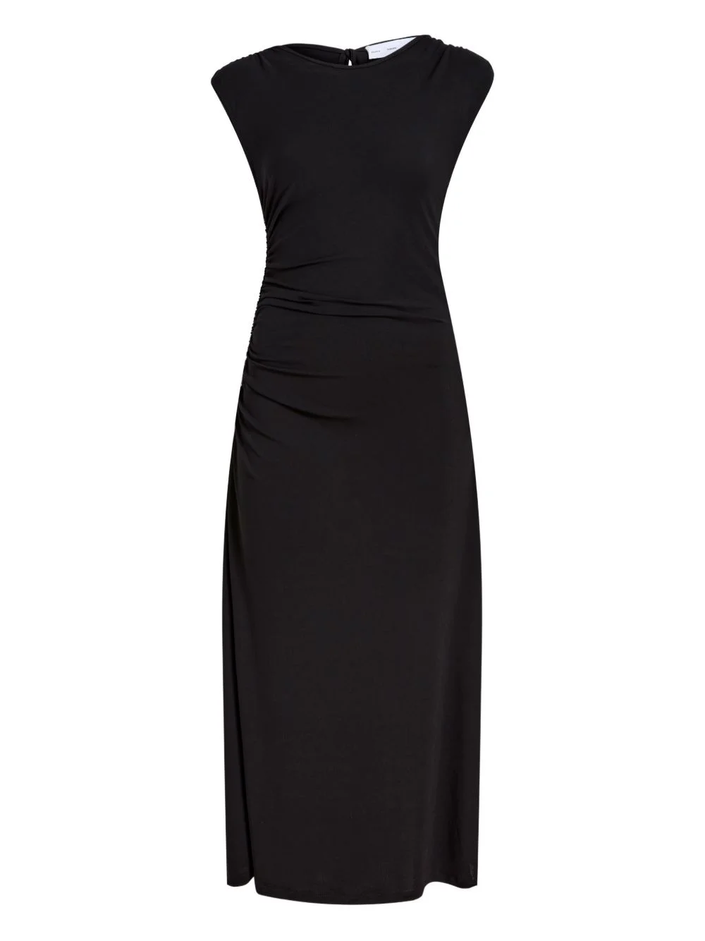 Mimi gathered-shoulder midi dress Highlights - Black - Gathered waist - Shor sleeves - Round neck - Midi length Imported Composition Polyester 97%, Elastane 3% Washing instructions Read Manufacturer Guidelines