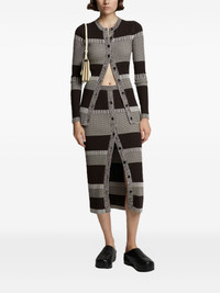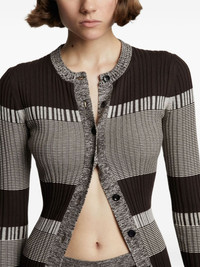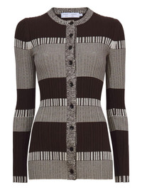 striped rib-knit cardigan This cardigan showcases Proenza Schouler White Label's contemporary approach to classic silhouettes. Woven from a soft silk blend, it combines a ribbed texture with an all-over stripe pattern varying in width. Highlights - Brown/off-white - Silk-cotton blend - Ribbed knit - Horizontal stripe pattern - Round neck - Front button fastening - Long sleeves - Straight hem Imported Composition Silk 70%, Cotton 29%, other fibers 1% Washing instructions Dry Clean Only