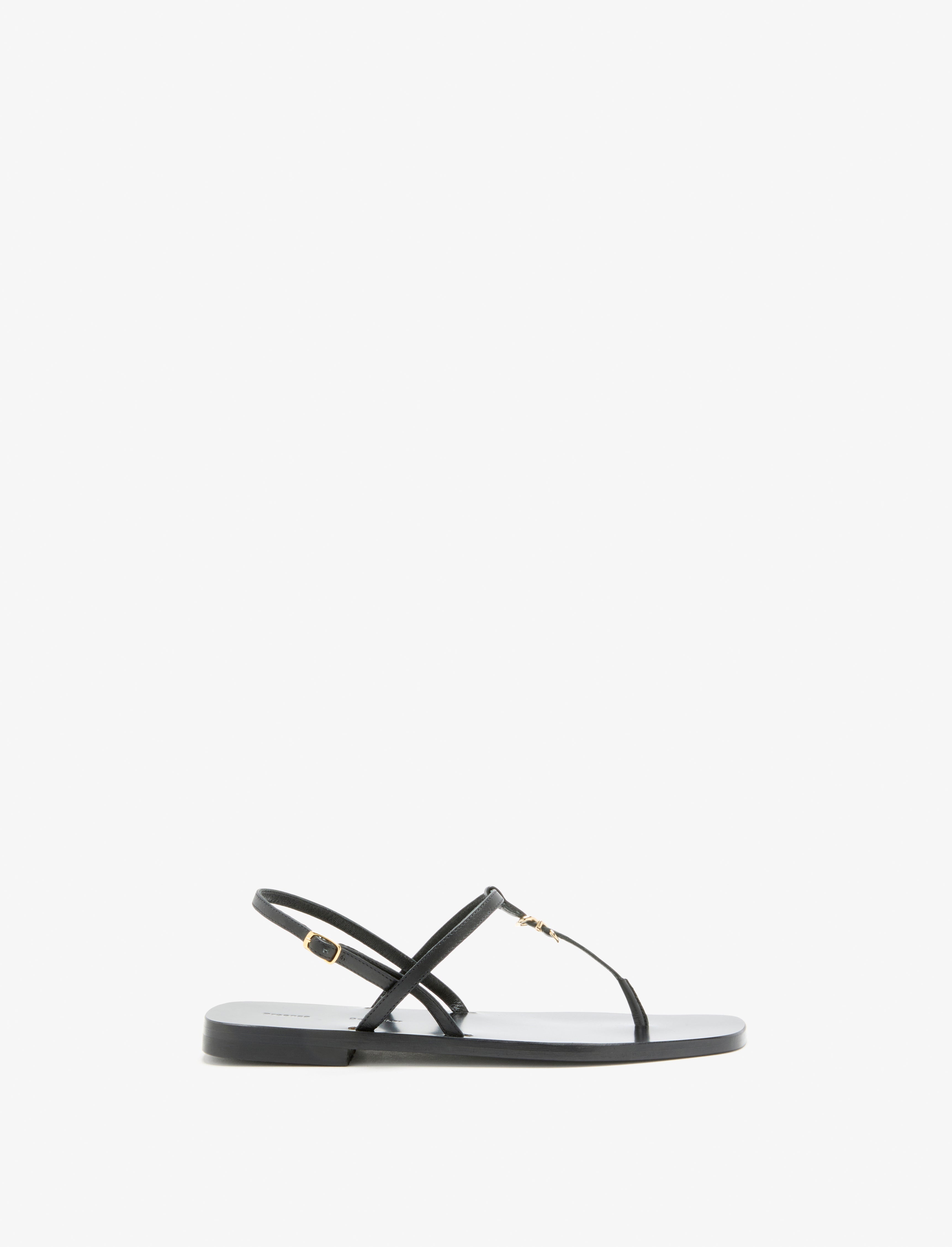 Details - Black - Flat heel - T-Strap upper - Gold-tone mini monogram detail - Side buckle closure - Embossed footbed - Upper: 100% calfskin; Sole: 100% rubber - SKU: SH25S056C006FR001 Size & Fit - True to size Care - Upper: 100% calfskin; Sole: 100% rubber - Please refer to care instructions provided with your order.