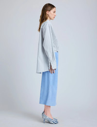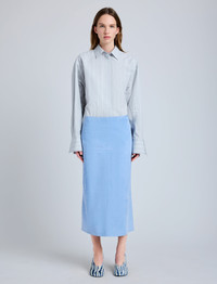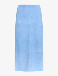 The Nadia Skirt in Suede is tailored to a slim, mid-length silhouette with paneled detailing. Finished with a concealed zip closure and a lower back vent. Details - Light blue - High-rise - Side zipper closure - Paneled detailing - Back vent - Straight hem - Slim fit - 100% lambskin - SKU: R2535003LR278A453 Size & Fit - Model is 5'9.5'' with 32'' bust / 34'' hips. Wearing size 4 Care - 100% lambskin - Dry clean only
