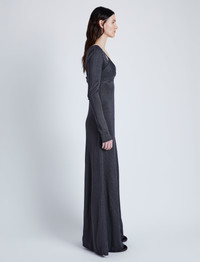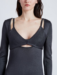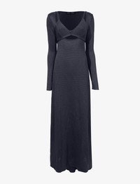 The Nalani Dress in Lacquered Viscose boasts an A-line silhouette with a glossy finish. Detailed with a compact triangle bra fixed to a long sleeve dress to create a layered appearance. Details - Slate - Glossy finish - Knit triangle bra - Long sleeve - Maxi-length hem - Slim fit - 100% viscose - SKU: R2447198KY331025 Size & Fit - Model is 5'11'' with 28.5'' bust / 34.5'' hips. Wearing size Small Care - 100% viscose - Dry clean only