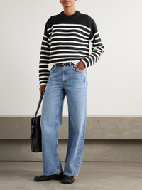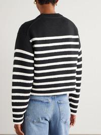 Proenza Schouler White Label's collections are filled with laidback yet refined staples you'll turn to often. This 'Nia' sweater is made from cotton-blend with touches of soft cashmere and has classic black and white stripes - the latter have a subtle boucle finish, giving them tactile interest. Complement the cropped length with high waisted jeans. Size & Fit - Fits true to size, take your normal size - Designed for a relaxed fit - Dropped shoulder seam - Mid-weight knit - Model is 177cm/ 5'10" and is wearing a size Small Model measurements: - Bust: 86cm/ 34" - Waist: 65cm/ 25.5" - Hip: 90cm/ 35.5" Details & Care - Black and white cotton-blend - Slips on - 78% cotton, 13% cashmere, 6% polyester, 3% viscose - Dry clean