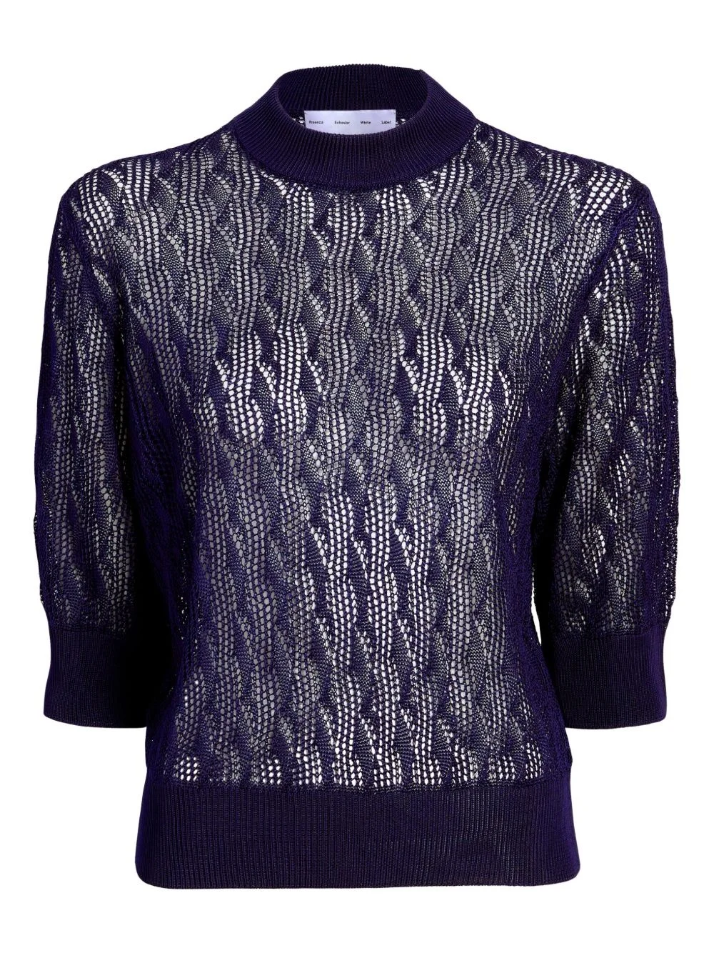 Nicola sweater Highlights - Navy blue - Crew neck - Three-quarter length sleeves - Ribbed cuffs and hem Imported Composition Rayon 100%
