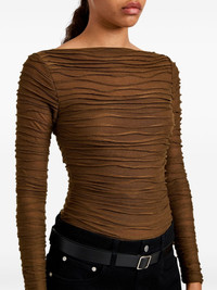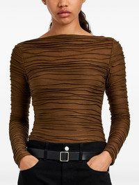 Paloma top Highlights - Earth brown - Horizontal stripe pattern - Boat neck - Long sleeves - Straight hem Imported Composition Rayon 100%, Polyester 100% Washing instructions Read Manufacturer Guidelines