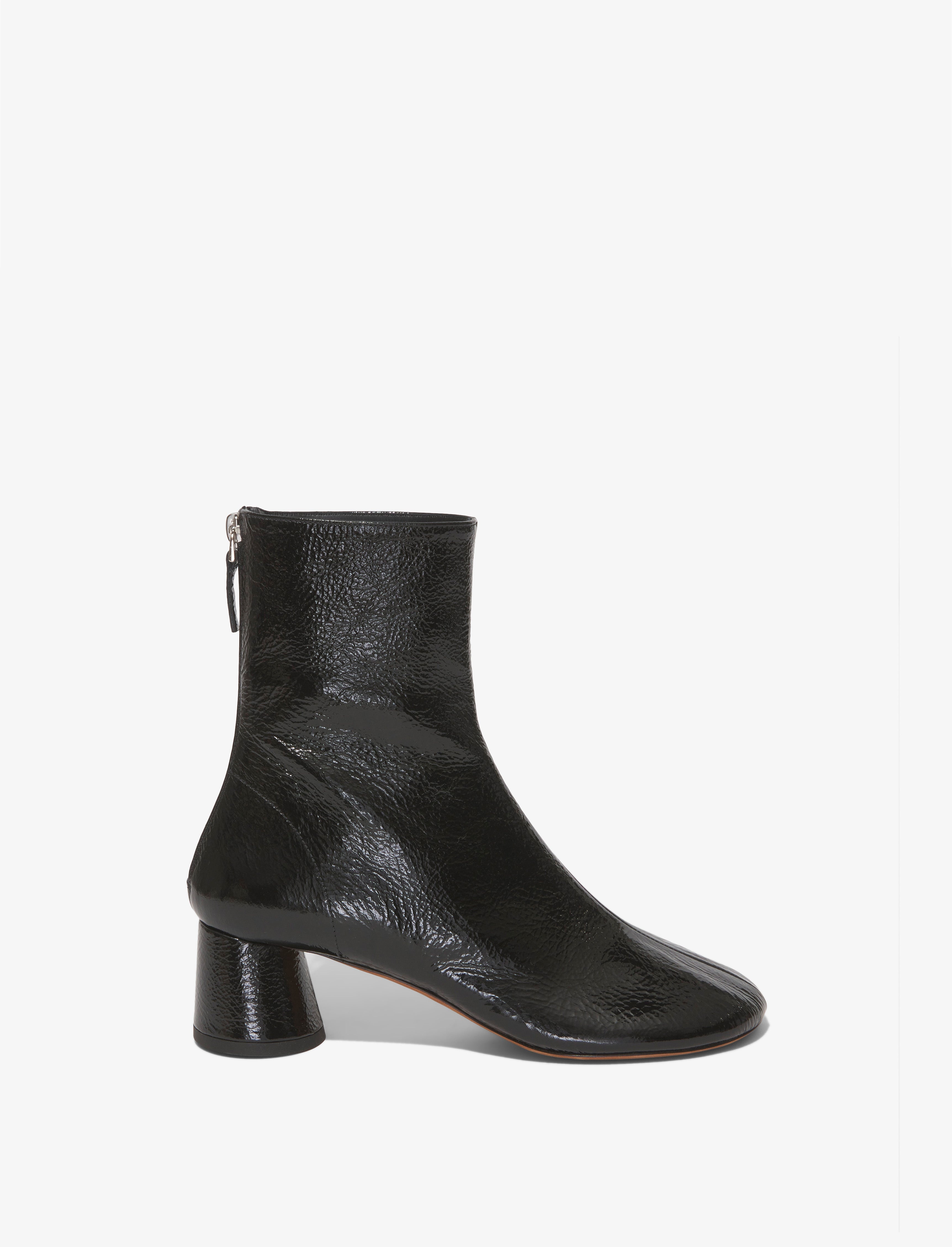 The Patent Glove Boots are crafted in crinkled patent leather to a fitted silhouette. Detailed with a round toe, they rest on a sculptural block heel. Details - Black - 55mm block heel - Crinkled patent finish - Round toe - Zip back fastening - Upper 100% lambskin; sole 100% calf leather - SKU: PS39006A16019999 Size & Fit True to Size Care - Upper 100% lambskin; sole 100% calf leather - Please refer to care instructions provided with your order.
