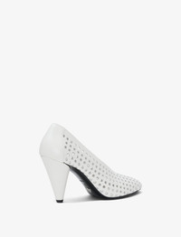 The Perforated Cone Pumps are cut from soft leather to a soft point toe silhouette with engineered perforation. Completed with a sculptural cone heel. Details • Cream • 85mm heel • Engineered perforation • Soft point toe silhouette • Cone style heel • Upper: 100% calfskin; sole: 100% leather • Made in Italy • SKU: PS42007A19111120 Size & Fit • True to Size Care • Upper: 100% calfskin; sole: 100% leather • Please refer to care instructions provided with your order.