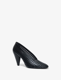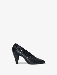The Perforated Cone Pumps are cut from soft leather to a soft point toe silhouette with engineered perforation. Completed with a sculptural cone heel. Details • Black • 85mm heel • Engineered perforation • Soft point toe silhouette • Cone style heel • Upper: 100% calfskin; sole: 100% leather • Made in Italy • SKU: PS42007A19110999 Size & Fit • True to Size Care • Upper: 100% calfskin; sole: 100% leather • Please refer to care instructions provided with your order.