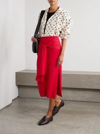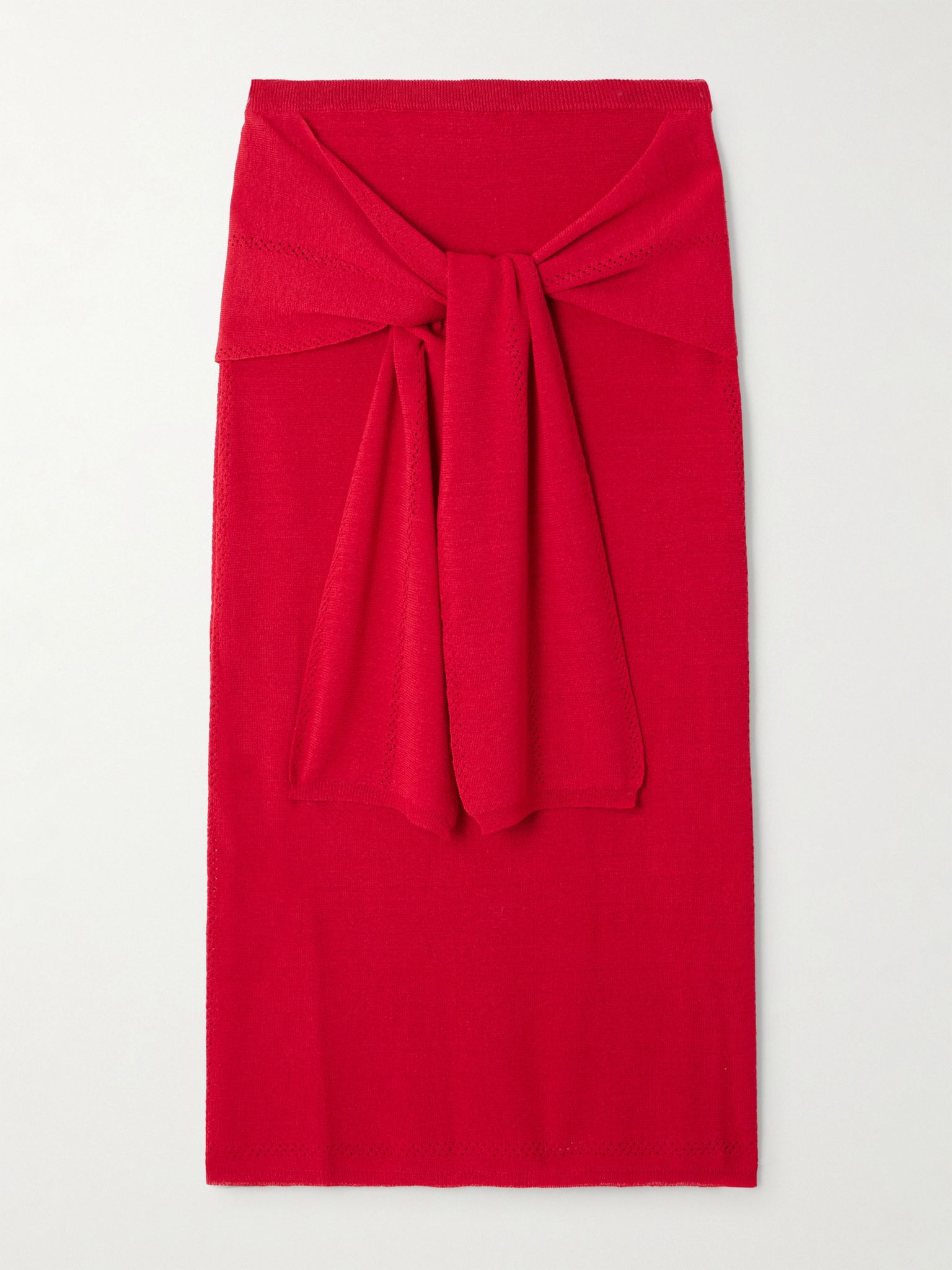 Phelan tie-front pointelle-knit linen-blend midi skirt Red